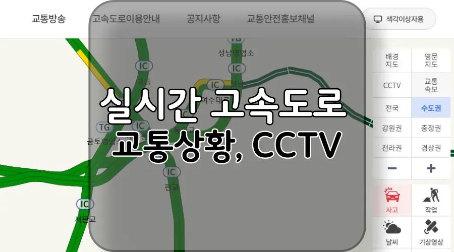 각 지역별, 전국 고속도로에 대한 실시간 교통정보와 CCTV영상을 쉽게 확인할 수 있습니다.